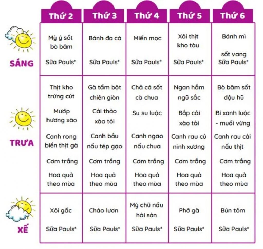 THỰC ĐƠN CỦA BÉ